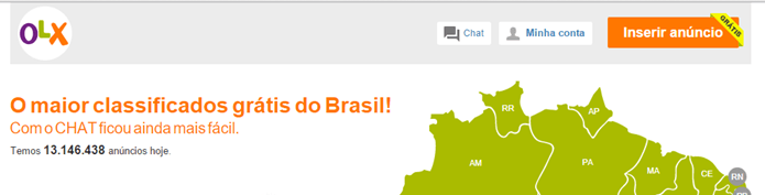 Inserir um novo anúncio no OLX é uma tarefa sem segredos. No topo de todas as páginas do site há um botão escrito “Inserir anúncio”. Basta clicar nele para ter acesso ao formulário específico de anúncio.